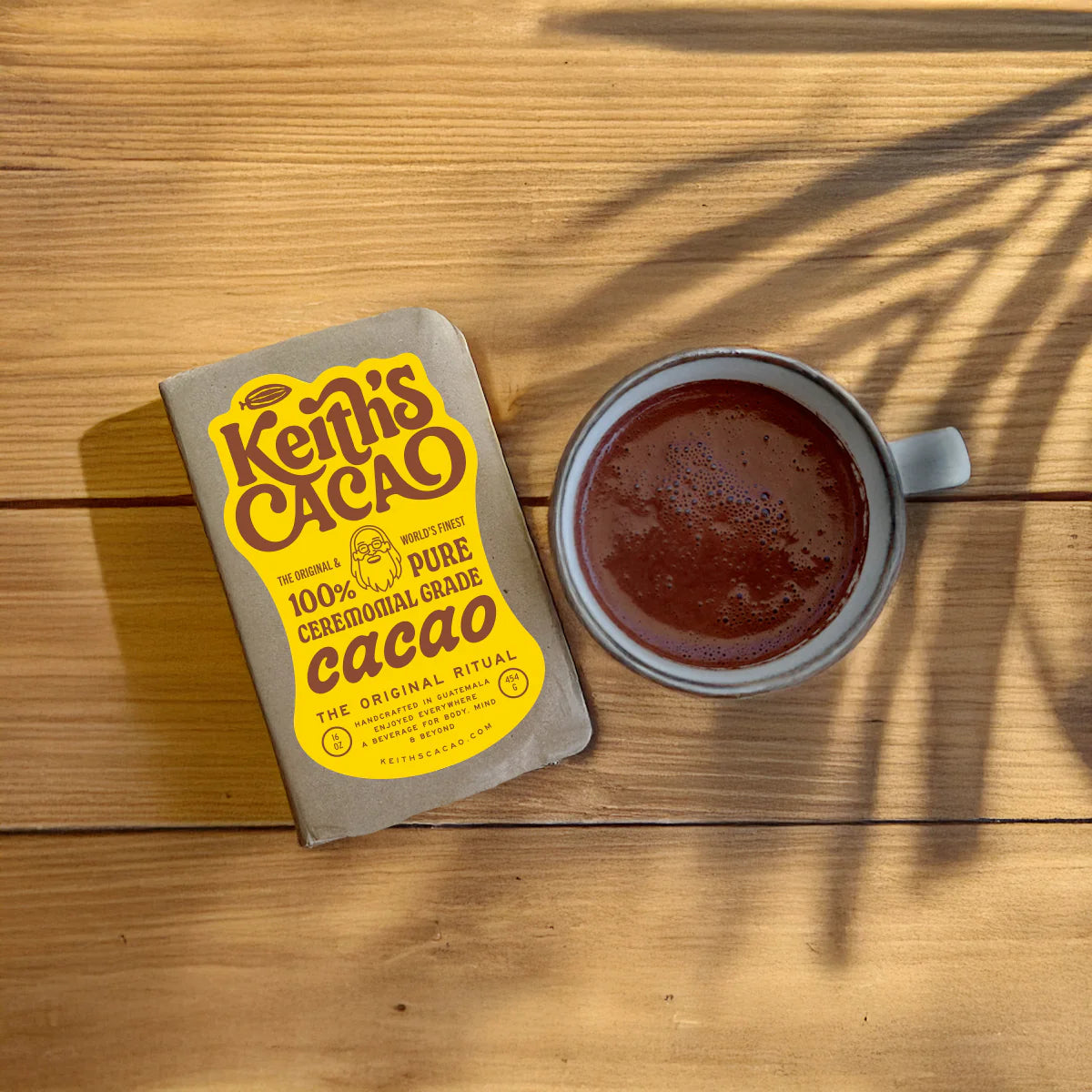 Keith’s Cacao er 100% Ceremonial kakó. Það kemur frá bændum í Guatemala og er unnið við Lake Atitlán, í samstarfi við heimamenn — með virðingu fyrir menningunni og umhverfinu.